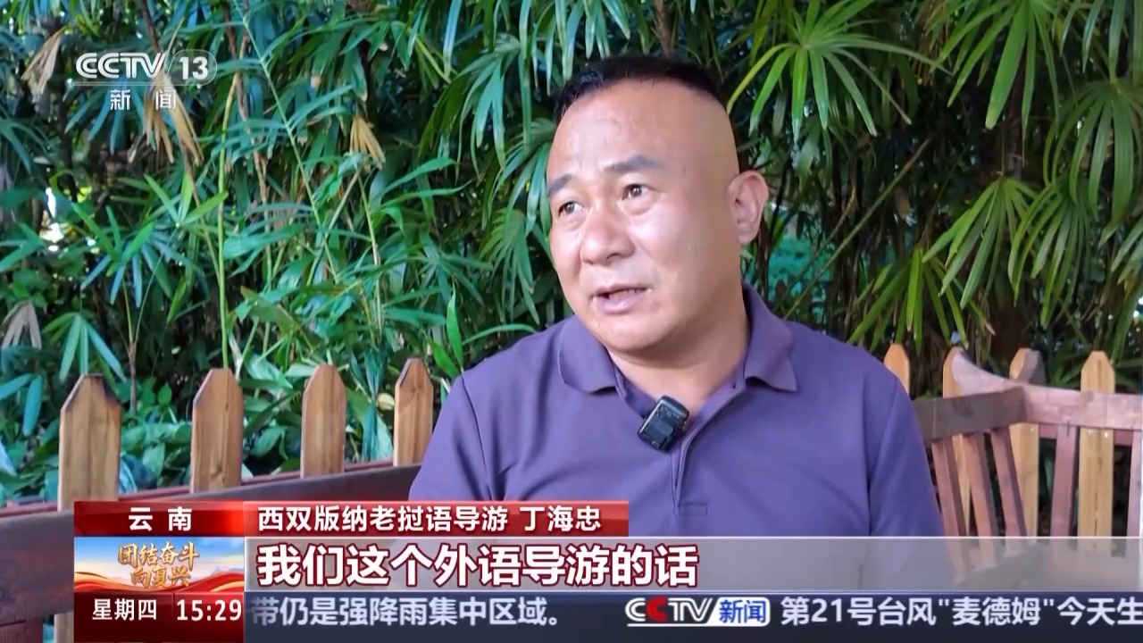 西双版纳老挝语导游丁海忠:作为外语导游,收入是增加的。我们服务于外国友人,把自己的家乡推出去是一件非常自豪的事情。