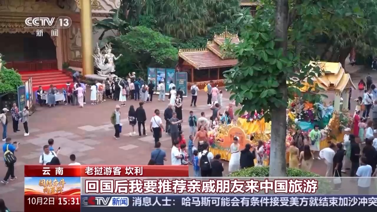 总台央视记者宋琎:通过东盟国家旅游团免签政策入境的外国游客,大都是中老年群体,不同于年轻人热衷于热闹的集市和刺激的活动,他们更在意的是寻访西双版纳独特的民俗文化,感受民族传统与现代融合的氛围。